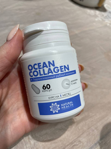 Ocean collagen – пищевая добавка для нормализации уровня коллагена, изготовленная на основе натурального рыбного коллагена и представленная в виде растительных капсул из кукурузной муки.