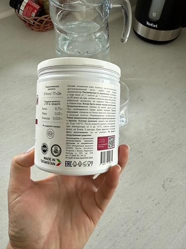 ДостоинстваУпаковка замечательная, полностью защищена от открытия при транспортировке. Коробка, пупырка, запаяна в плёнку банка и замочек на крышке от производителя. Вкус приятный с кислинкой без сахара.